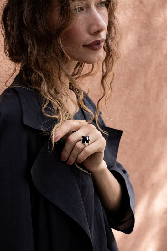 BLACK SPINEL | DOVETAIL PYRAMID TALON RING