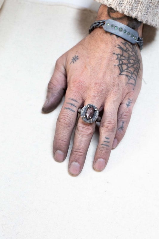 BLACK SPINEL | DOVETAIL PYRAMID TALON RING