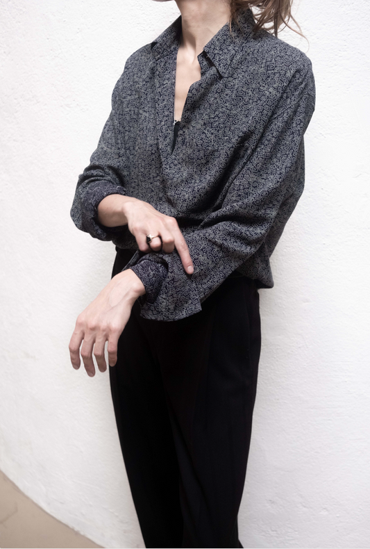 Dress Shirt in Dark Blue Party Print Tencel